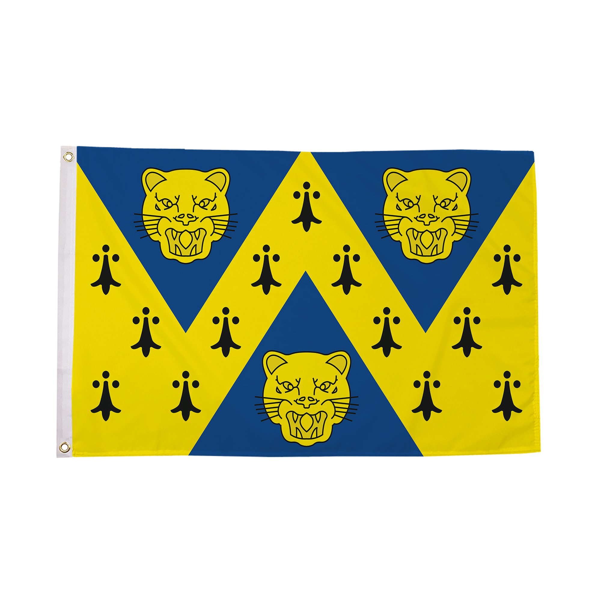The Shropshire New Flag is a modern and symbolic representation of the historic county of Shropshire, located in the West Midlands of England. The flag features a striking design that incorporates the county's rich heritage, natural beauty, and historical significance. The flag's bold color scheme and distinctive symbols reflect Shropshire's identity, blending traditional values with a forward-thinking vision. Whether displayed at county celebrations, public events, or as a tribute to the county's legacy, the Shropshire New Flag serves as a proud symbol of local pride and unity. Made from high-quality polyester, it is durable and ideal for both indoor and outdoor use, ensuring that it remains vibrant in all weather conditions.