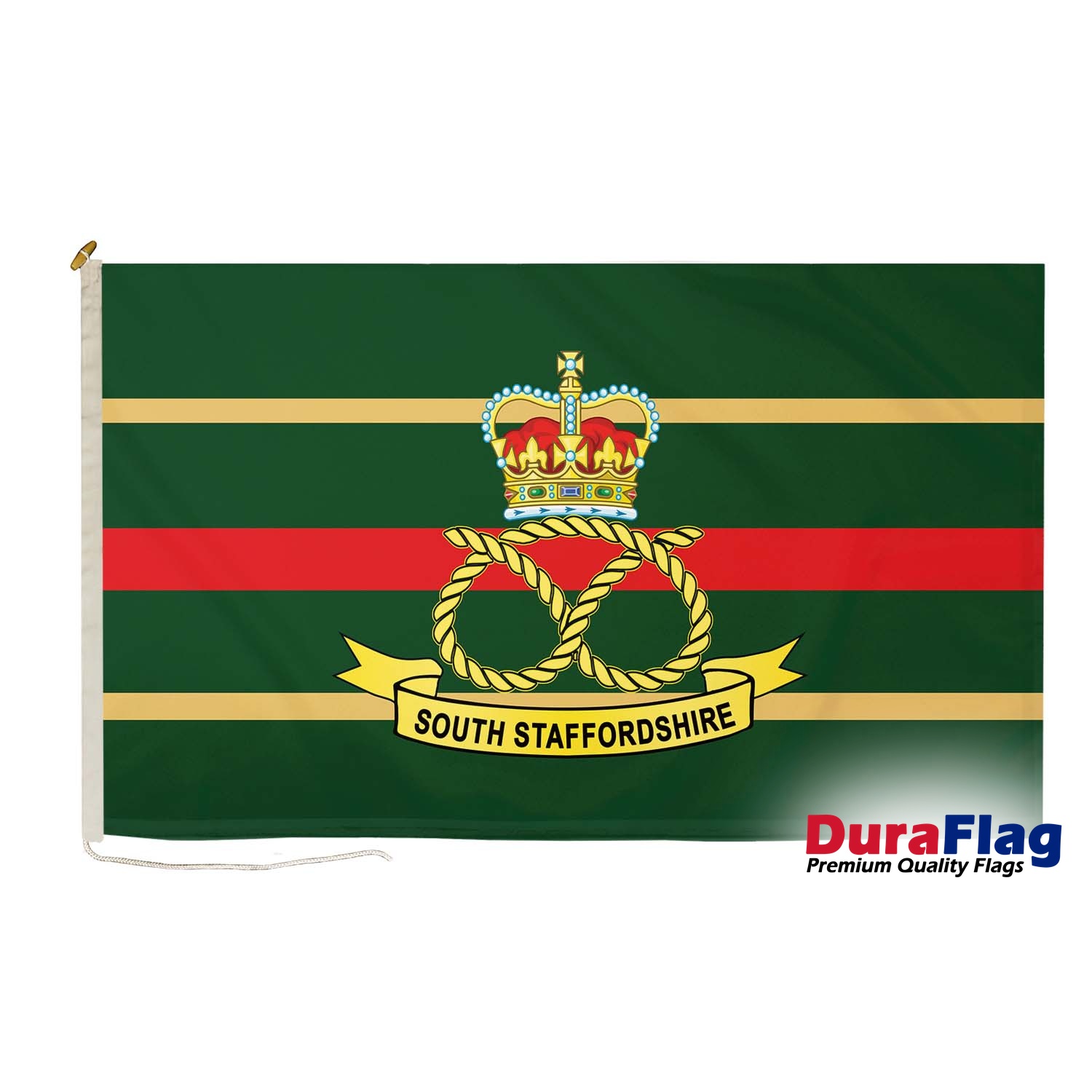 The South Staffordshire Regiment DuraFlag is a proud tribute to the rich history and military heritage of the South Staffordshire Regiment, a distinguished unit with a long legacy in the British Army. Featuring the regiment's iconic insignia, this premium flag symbolizes the bravery, sacrifice, and service of its soldiers throughout history. Made from durable, weather-resistant materials, the South Staffordshire Regiment DuraFlag is designed to withstand both indoor and outdoor conditions, ensuring vibrant color retention and long-lasting durability. Whether displayed during military commemorations, parades, or as a symbol of military pride, this heavy-duty flag will endure the test of time. It comes equipped with fittings like rope and toggles, clips, and D-rings for easy and secure display at any location.