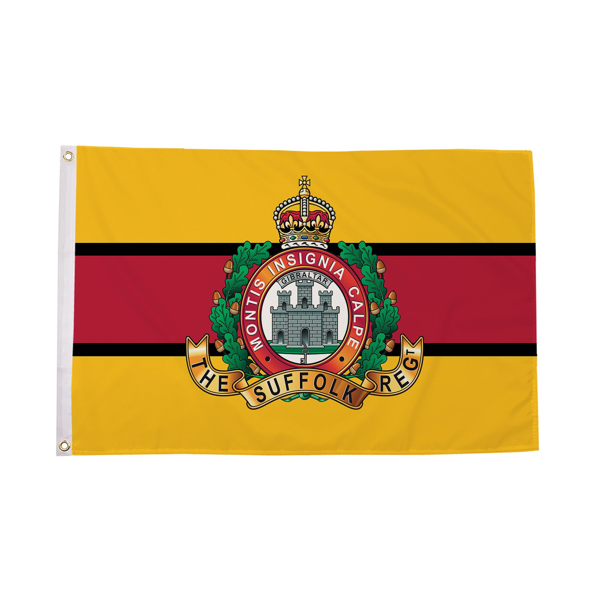 The Suffolk Regiment Flag is a tribute to the bravery and history of the Suffolk Regiment, which served as one of the most distinguished infantry regiments in the British Army. Featuring a bold and traditional design, the flag showcases the regiment's colors and emblems, symbolizing the strength, resilience, and sacrifices made by the soldiers who served. The Suffolk Regiment Flag is perfect for military collectors, history enthusiasts, and those who wish to honor the regiment's proud legacy. Whether displayed in a museum, at a military event, or at home, this flag is a lasting symbol of the regiment's rich heritage.