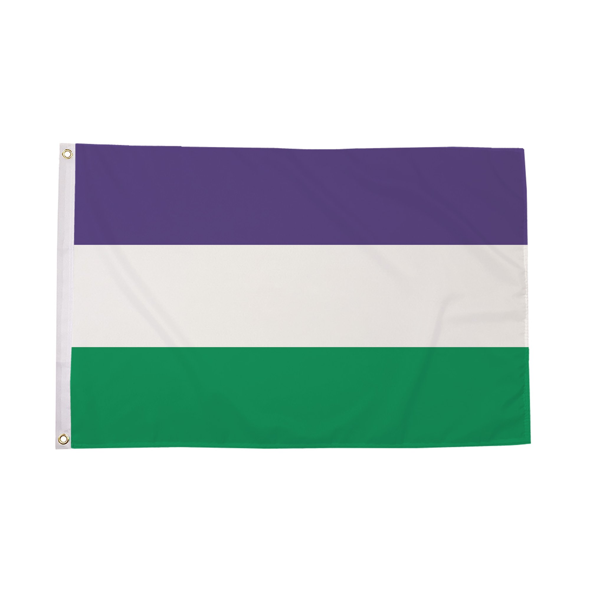 The Suffragette Flag is an important symbol of the women's suffrage movement, representing the tireless efforts of women who fought for equal voting rights. The flag features the iconic colors associated with the suffragette movement-purple, white, and green-each of which carries deep significance. Purple symbolizes dignity and the fight for equality, white represents purity and the moral force behind the suffrage movement, and green stands for hope and the desire for a better future. The Suffragette Flag is a powerful reminder of the progress made in the fight for gender equality and is perfect for display at historical commemorations, women's rights events, and educational exhibitions.