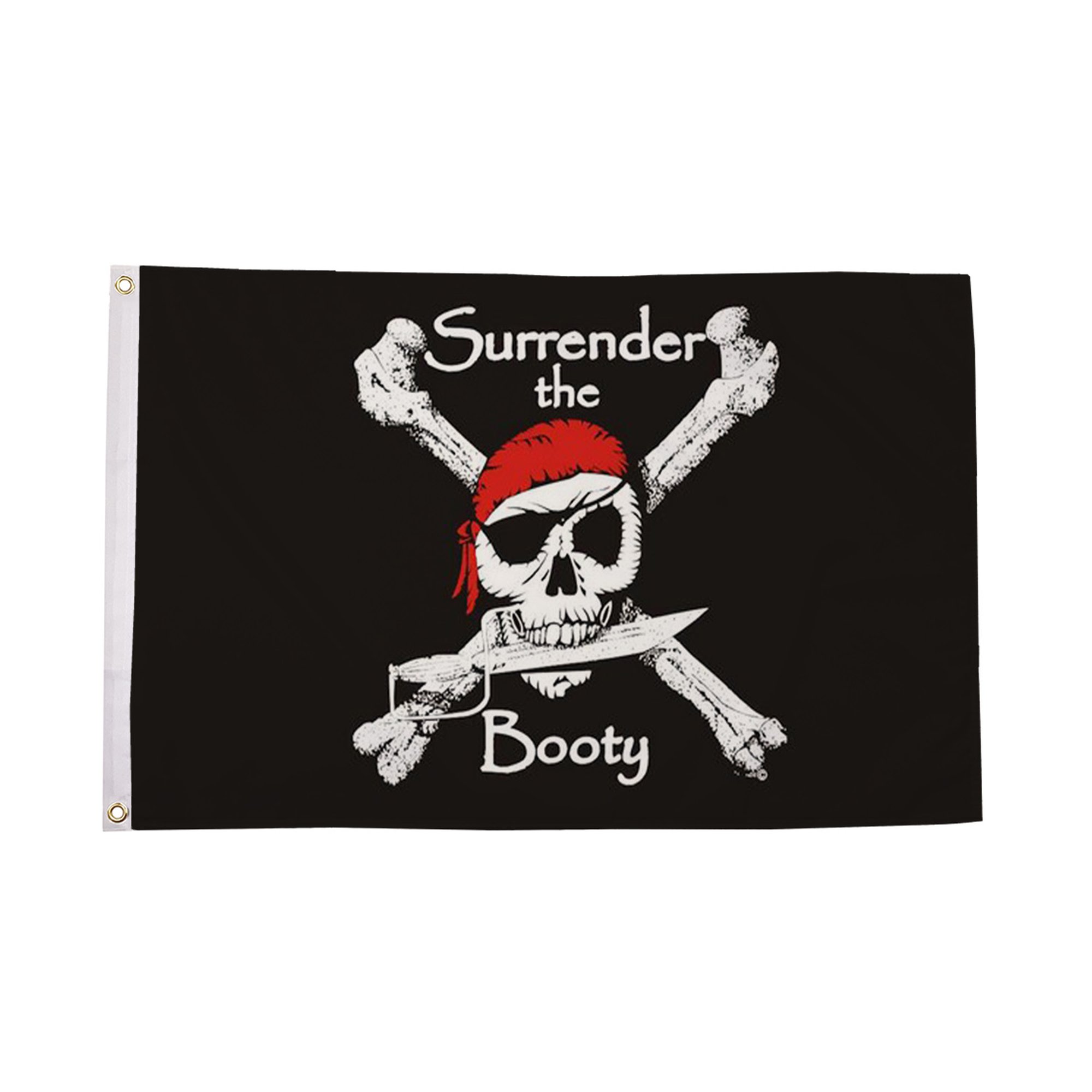 Constructed from durable polyester, the Surrender the Booty Flag is designed to withstand the elements while maintaining its vibrant colors. Whether flown outdoors during parties or displayed indoors for year-round enjoyment, the flag's sturdy fabric ensures it remains intact and visible. Its unique design and high-quality materials make it a long-lasting addition to your collection of fun, themed flags. The Surrender the Booty Flag is perfect for those who want to add a bit of humor and pirate flair to any space.