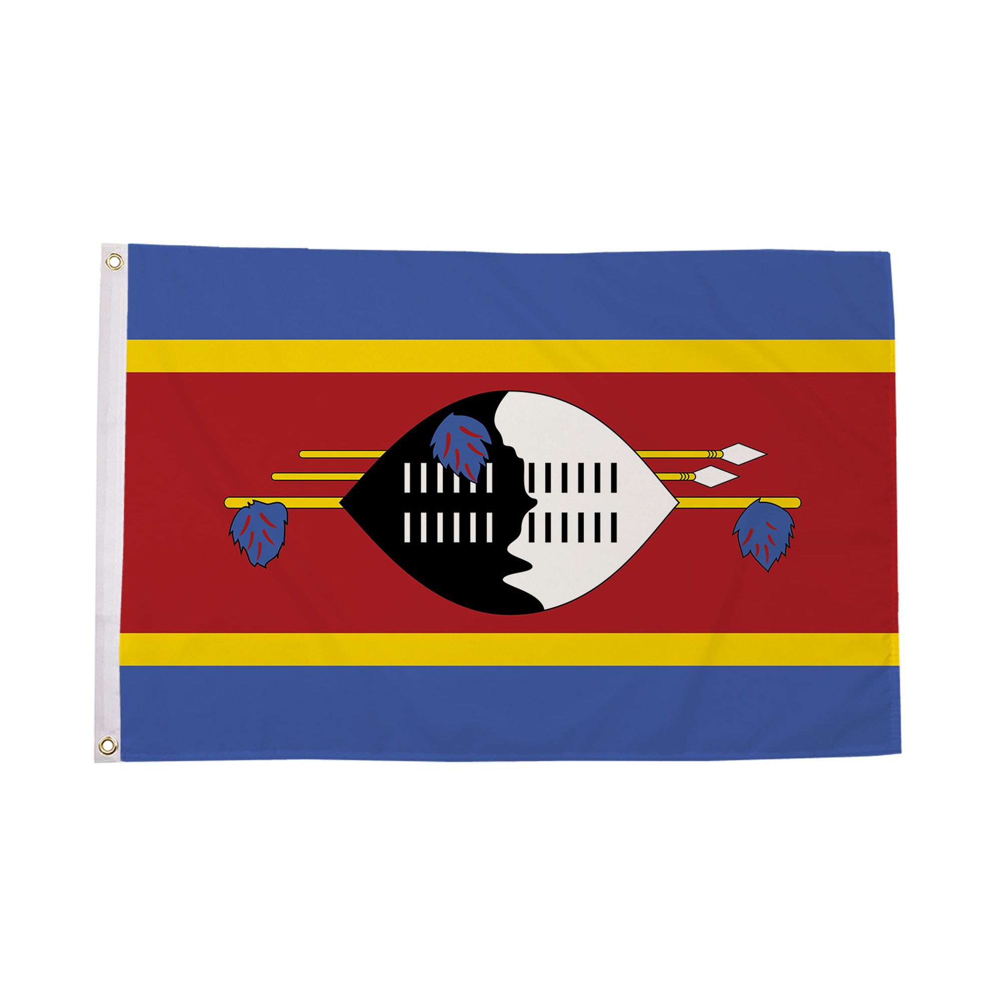 The Swaziland Flag is a striking and colorful representation of the Kingdom of Eswatini (formerly known as Swaziland), symbolizing the country's rich cultural heritage and deep connection to its monarchy and traditional values. The flag features a bold mix of blue, red, yellow, and black, each of which holds deep meaning within Eswatini's history. The central shield, which is the focal point of the flag, is a symbol of protection and unity. The Swaziland Flag is a perfect tribute to the pride, strength, and resilience of the Swazi people and is ideal for those looking to display this rich national heritage with honor.