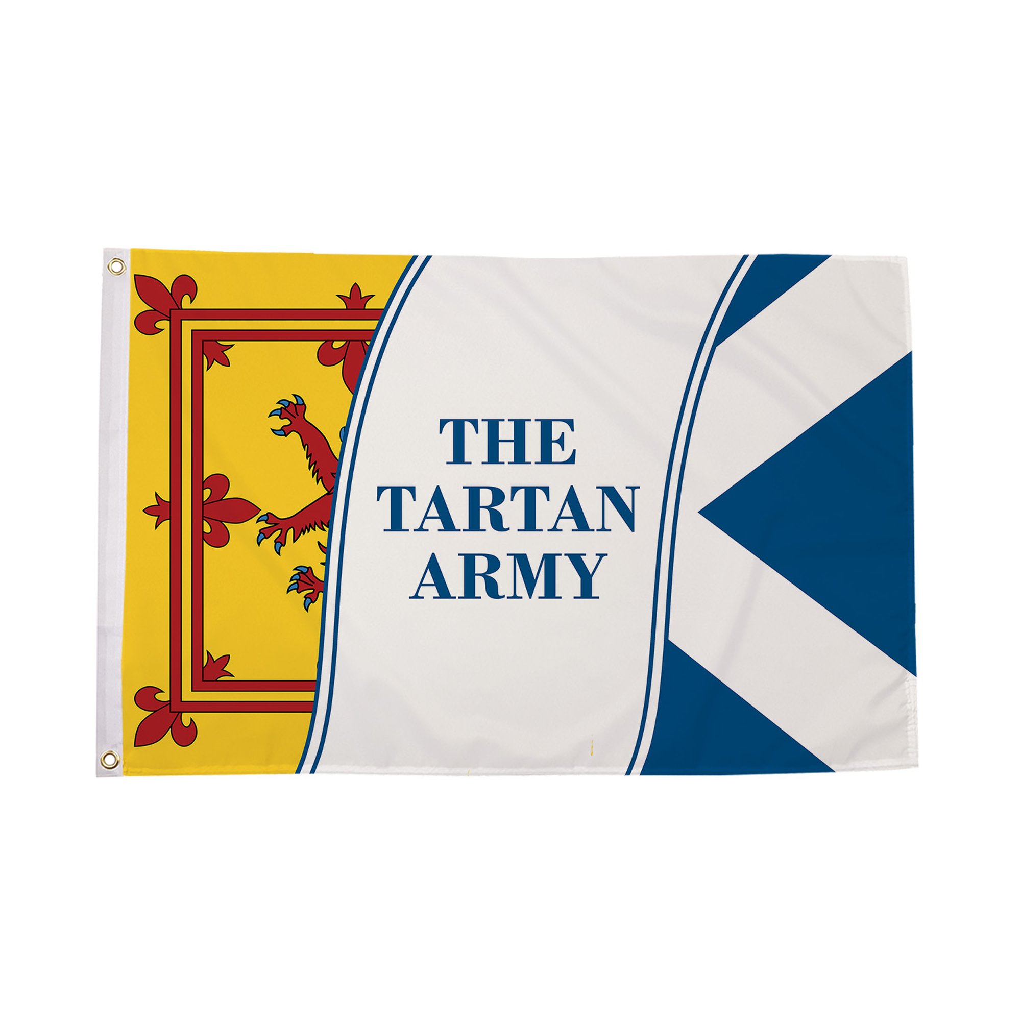 The Tartan Army Flag is a vibrant and unmistakable symbol of Scottish pride and unity. With its striking tartan pattern, it represents the passionate fanbase of Scotland's national football team, commonly referred to as the "Tartan Army." Known for their dedicated support of Scottish football, the Tartan Army has become a global symbol of Scottish camaraderie and spirit. The Tartan Army Flag is often displayed at matches, parades, and celebrations, showing the world the strength and enthusiasm of Scottish football fans. Whether you're at a stadium, a parade, or celebrating Scottish heritage, this flag is an essential symbol of pride and solidarity.