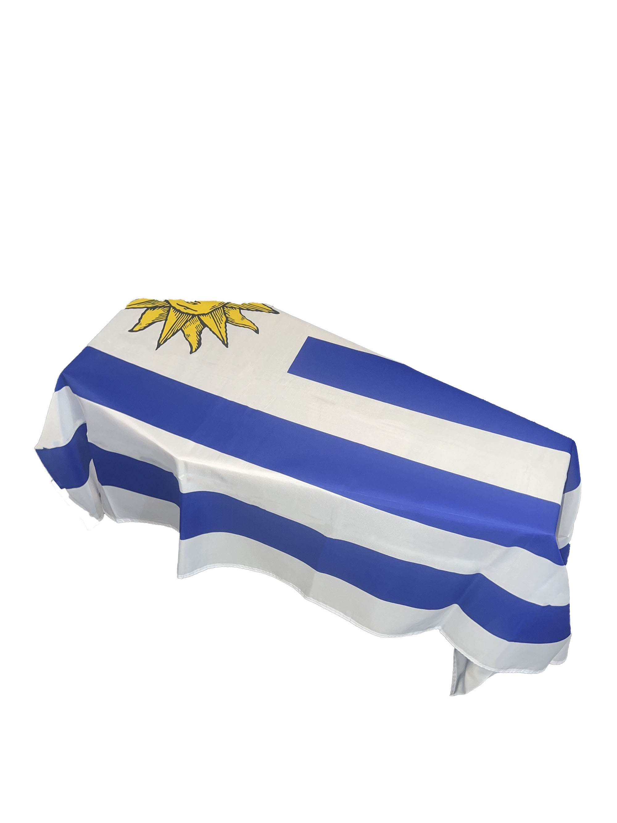 Searching for "coffin drapes," "casket covers," or "Uruguay memorial drapes"? The Uruguay Coffin Drape Flag offers a lasting tribute to the nation's rich culture, heritage, and national pride. Available in both woven polyester for an economical option and premium knitted polyester for a refined finish, this drape combines elegance with the profound symbolism of Uruguay. Whether you are honouring a beloved family member, a national figure, or someone with deep ties to Uruguay, the Uruguay Coffin Drape Flag ensures a meaningful and memorable tribute.