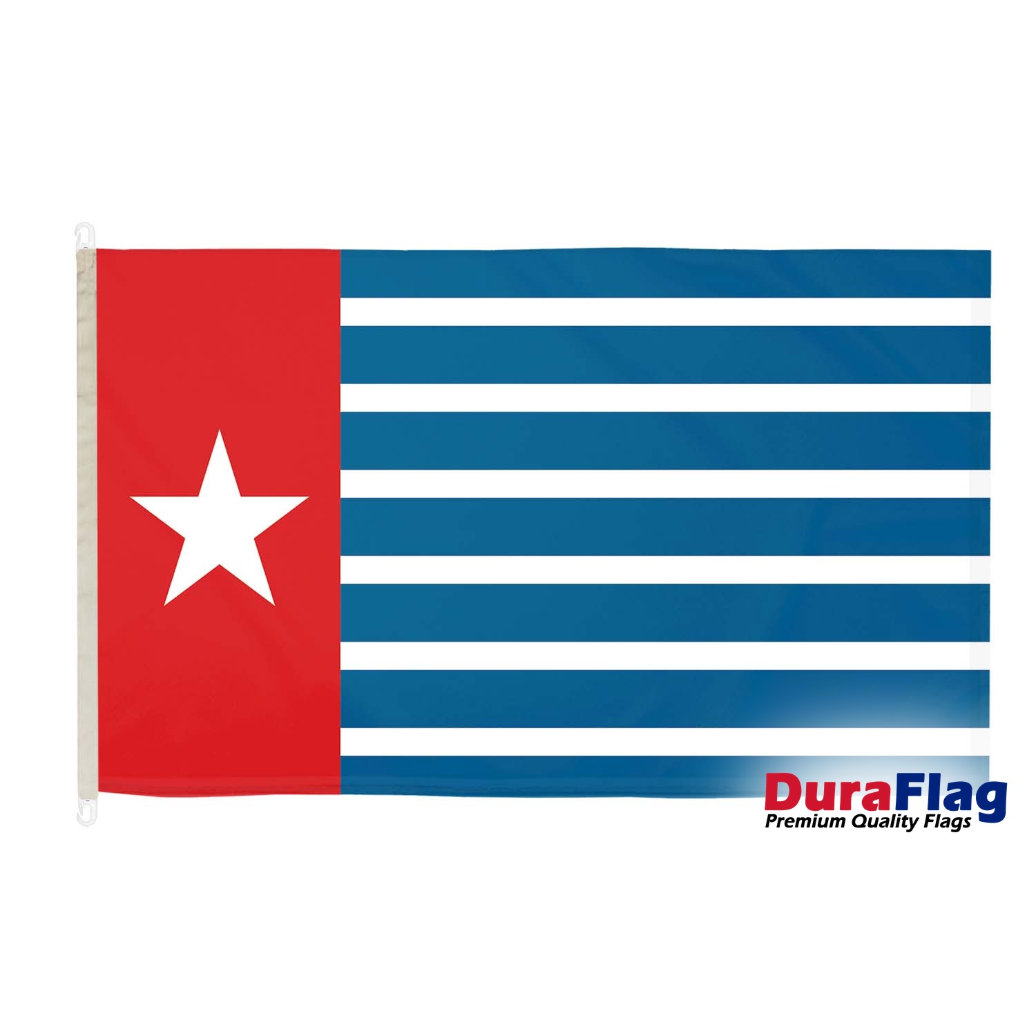 The West Papua DuraFlag represents the people of West Papua, an island region in Oceania with a rich and complex history. The flag symbolizes the ongoing struggle for self-determination, freedom, and recognition. Featuring blue and red colors with a prominent white star, the flag is a powerful symbol of the West Papuan people's resilience in their pursuit of independence. The blue represents the sky and the ocean, while the red and white symbolize the bloodshed and hope for a peaceful future. The star stands for the West Papuan people's aspiration for freedom. Made from premium, weather-resistant materials, the West Papua DuraFlag is designed for durability and vibrant color retention, ensuring it remains a lasting symbol of the West Papuan cause. Whether displayed during political events, protests, or as a tribute to the people of West Papua, this heavy-duty flag will stand the test of time. Equipped with versatile fittings like rope and toggles, clips, and D-rings, it is easy to securely display the flag at any location.