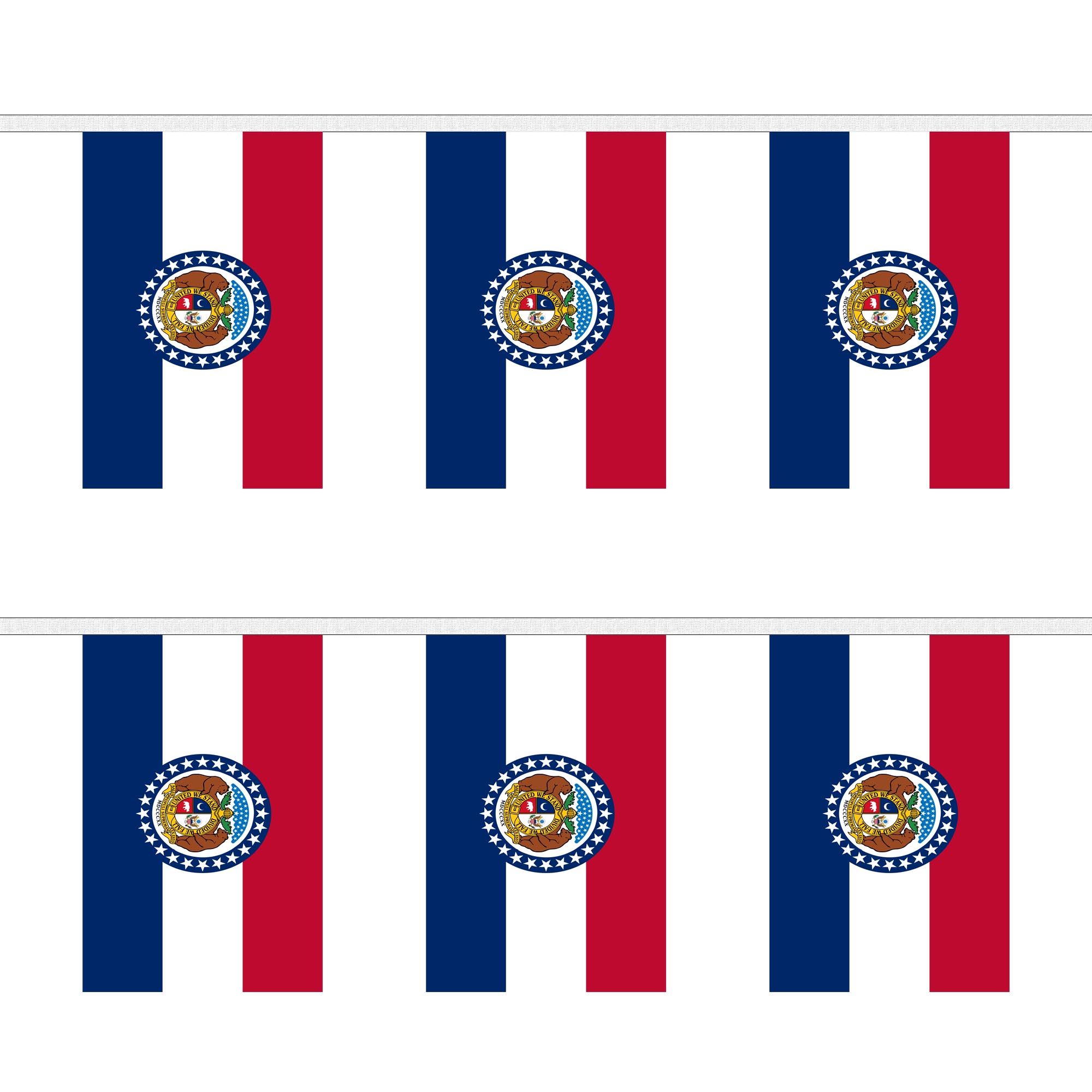 Ideal for Missouri's state holidays, such as Statehood Day, or local festivals, this bunting will bring a proud and festive atmosphere to your gathering. Whether you're hosting a state celebration, showcasing Missouri's rich history, or simply showing your pride for the state, this bunting will enhance your déor with beauty and significance.