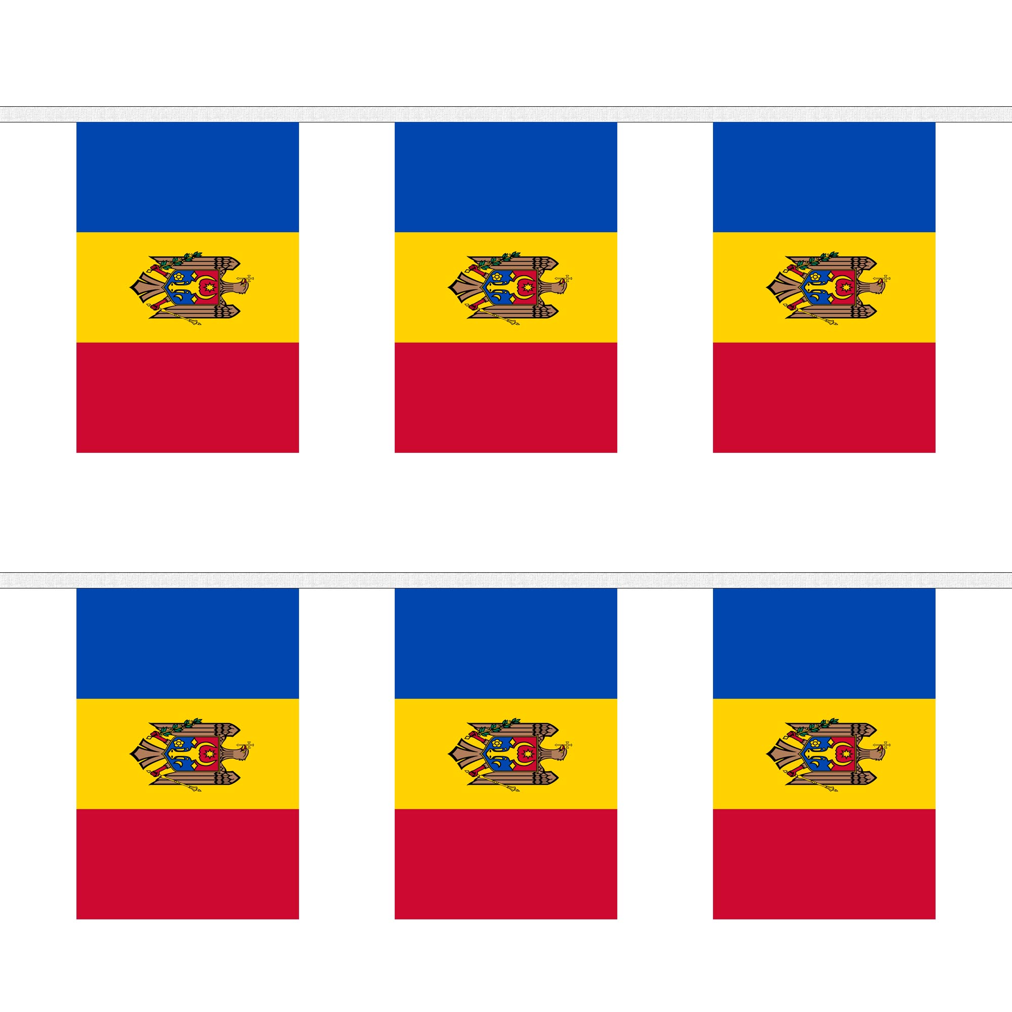 Ideal for Moldova's national holidays such as Independence Day, local festivals, or any event that celebrates the country's rich culture and history, this bunting will bring a patriotic and spirited atmosphere to your gathering. Whether you're hosting a cultural celebration, commemorating Moldova's independence, or simply showcasing your pride for the country, this bunting will enhance your déor with beauty and meaning.