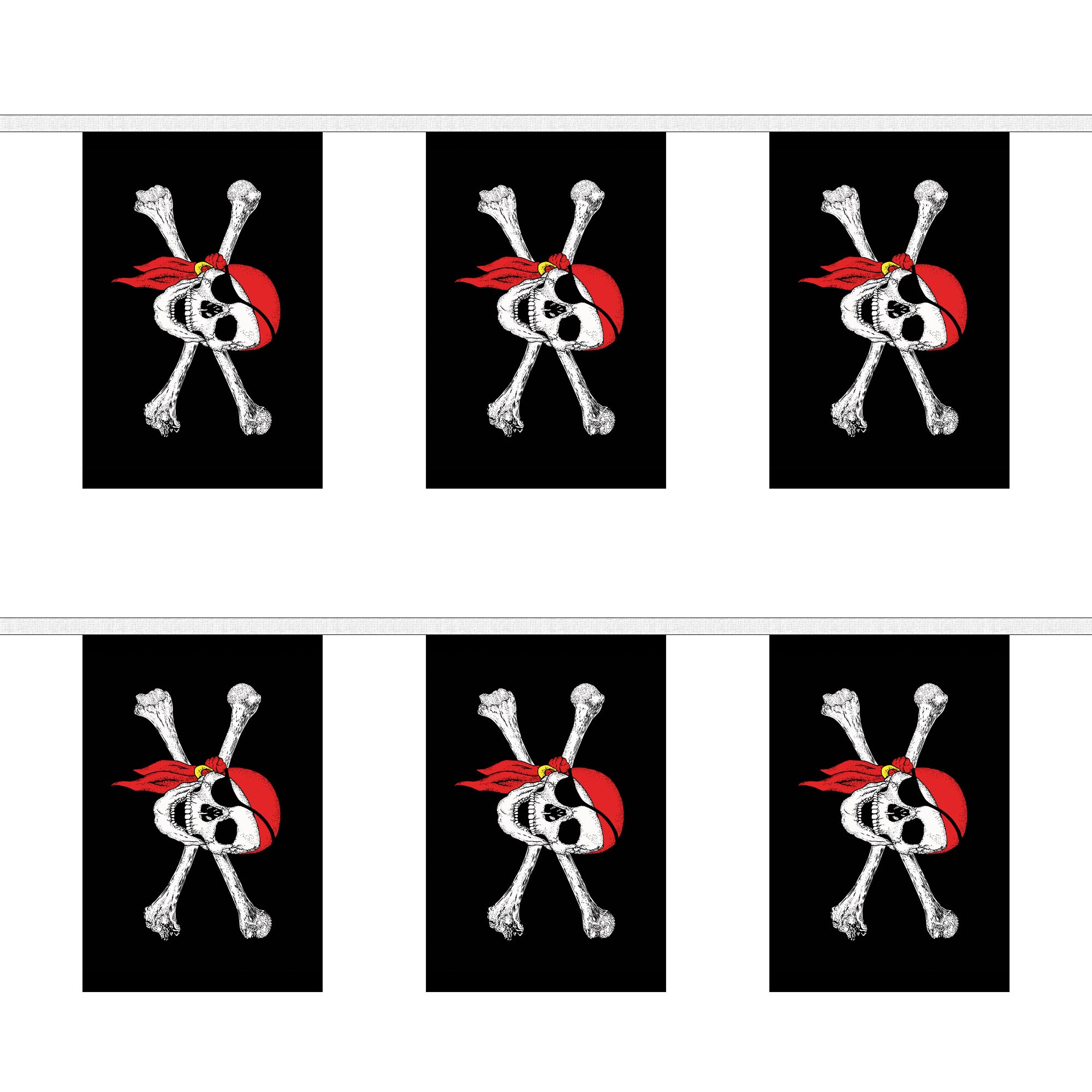 Searching for "pirate flag bunting," "bandana party decorations," or "pirate event garland"? This product offers exceptional quality and a fun design that brings the pirate spirit to life. Made with fade-resistant inks and durable polyester, the Pirate Bandana Rectangular Bunting is perfect for both indoor and outdoor use. Whether youå¿åé©îe decorating for a pirate-themed event, a nautical celebration, or just adding some fun to your party, this bunting is the perfect way to complete your pirate decor.