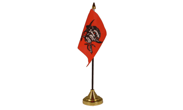 Searching for "skull flags," "gothic table flags," or "punk desk flags"? The Red Skull Small Table Flag is the perfect choice for those who want to showcase their bold and rebellious side. With its durable construction and fierce design, this flag will continue to make a statement for years to come. Whether for an event, as part of your home decor, or in your office, this table flag proudly represents strength, power, and individuality.