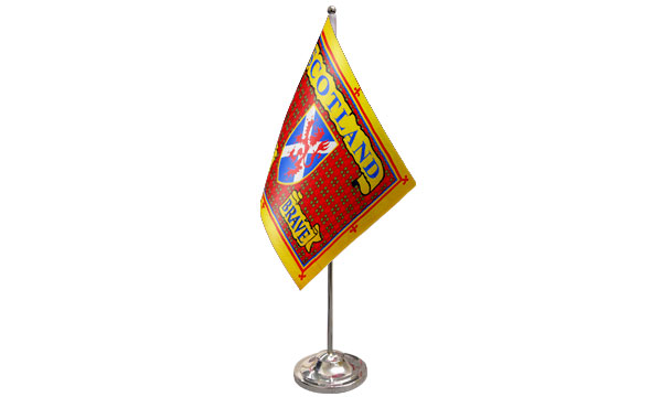 Celebrate Scotland's proud history and heritage with our premium Scotland The Brave Satin Table Flag. This high-quality satin flag features the iconic "Scotland The Brave" design, symbolizing the countryà¢àâ¬àâ¢s deep-rooted national pride, tradition, and rich cultural history. Crafted from luxurious satin fabric, the flag showcases a glossy finish that enhances the vibrant colors and intricate details of the design. The premium satin ensures the flag maintains its vibrant appearance, making it the perfect addition to national celebrations, cultural events, or personal collections. Mounted on a durable chrome pole with a sturdy base, ità¢àâ¬àâ¢s easy to display and perfect for any setting.