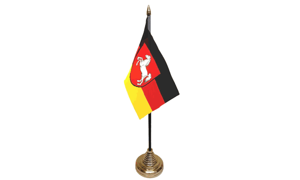 Lower Saxony is one of the 16 federal states of Germany, known for its cultural heritage, stunning landscapes, and historical importance. The flag of Lower Saxony features a red background with the state's iconic lion emblem in the center, which symbolizes strength, courage, and the proud history of the region. The lion dates back to the medieval era and has long been a symbol of the Duchy of Saxony. This small table flag represents the rich history and regional pride of Lower Saxony, bringing a compact yet powerful piece of German heritage into your space. Whether you are honoring the region's past, showcasing its cultural diversity, or simply celebrating its achievements, this flag makes a fitting tribute to Lower Saxony's legacy.