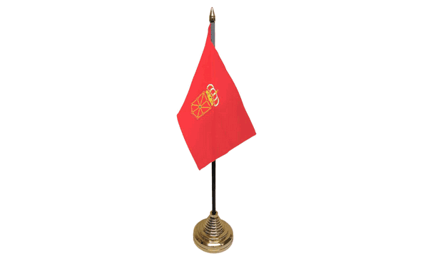 The Navarre flag features a deep red background with the traditional coat of arms at the center. The coat of arms consists of a shield with a red background and a chain surrounding it, along with traditional symbols representing the Kingdom of Navarre. This flag reflects Navarre's rich historical background and its status as a historic kingdom within Spain. The red color symbolizes the region's vibrant heritage and its legacy of independence. This miniature flag beautifully encapsulates the spirit of Navarre, offering a compact yet powerful representation of the region's identity.