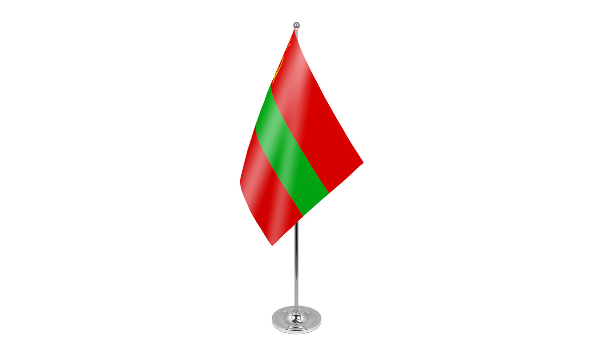 The Transnistria Satin Table Flag features the bold red, green, and gold colors of Transnistriaà¢àâ¬àâ¢s flag, symbolizing the regionà¢àâ¬àâ¢s unique identity, cultural pride, and history. Crafted from high-quality satin fabric, this flag boasts a smooth, glossy finish that enhances the vivid colors and intricate details. Mounted on a sturdy chrome pole with a solid base, this flag remains stable and easy to display. Whether displayed at cultural events, regional holidays, or as part of a personal collection, this flag proudly represents Transnistriaà¢àâ¬àâ¢s national identity.