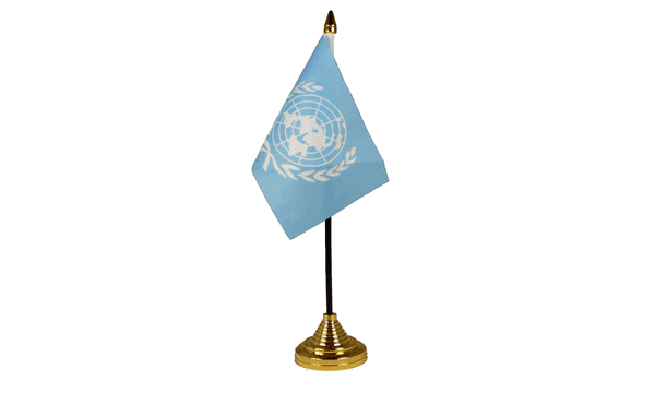 Show your support for global unity and peace with the United Nations Small Table Flag. This desk flag features the iconic flag of the United Nations, symbolizing international cooperation, peacekeeping, and global solidarity. The flag, with its light blue background and the emblem of the UN, represents the commitment of member nations to work together to address global challenges and promote peace, justice, and human rights. Perfect for international events, diplomatic functions, or as a meaningful piece for your home or office, this miniature flag serves as a reminder of the ongoing efforts toward global cooperation. Made from durable materials, this flag is built to last and will maintain its vibrant colors over time.