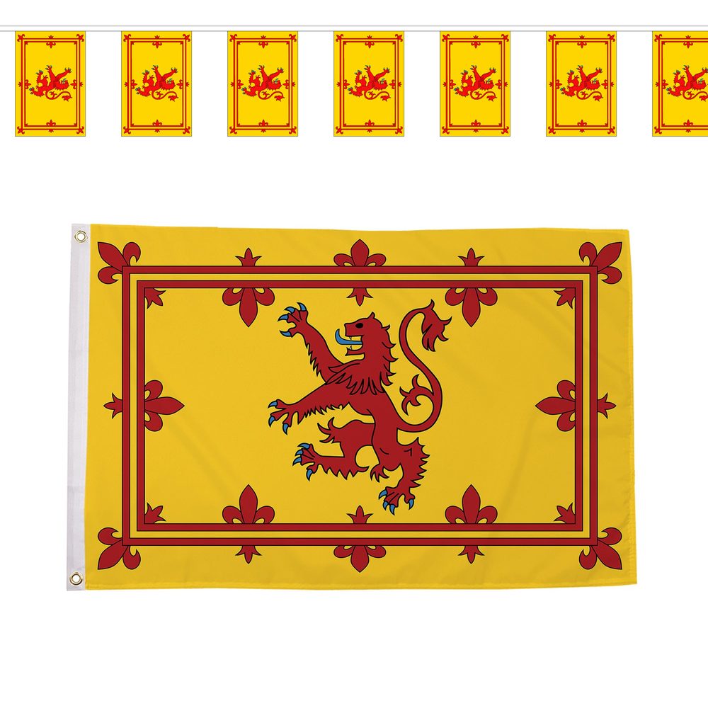 - Medium Bundle — 5ft x 3ft Scotland Saltire flag and 9 metres of Scotland bunting. Perfect for living rooms, garden fences, offices and indoor watch parties.
