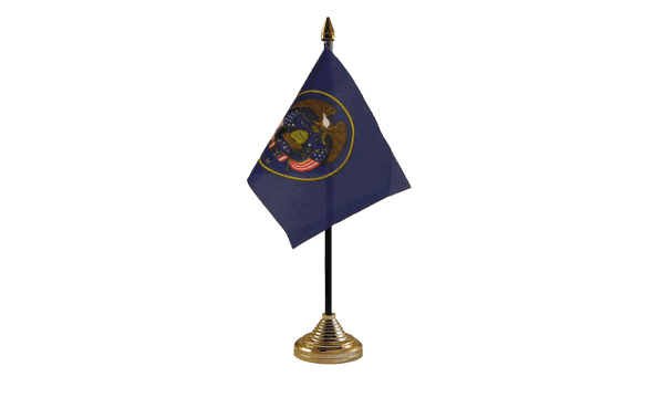 The Utah Small Table Flag features the official flag of Utah, which consists of a blue field with the state seal in the center. The seal includes an eagle, representing the United States, and a beehive, symbolizing Utah's nickname, "The Beehive State." The beehive represents Utah's pioneer heritage, industry, and the state's hardworking, resourceful people. The flag also includes a banner with the date of Utah's statehood, January 4, 1896. Displaying this desk flag is a great way to honor Utah's history and the values of self-sufficiency, perseverance, and community.