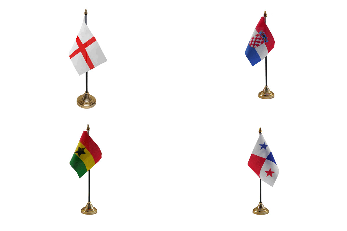 Show your support for World Cup 2026 Group L with this dedicated table flag set featuring England, Croatia, Ghana & Panama. England face a 2018 World Cup semi-final rematch against Croatia, plus Ghana and Panama. The Three Lions will be among the favourites and this group will captivate UK fans throughout.