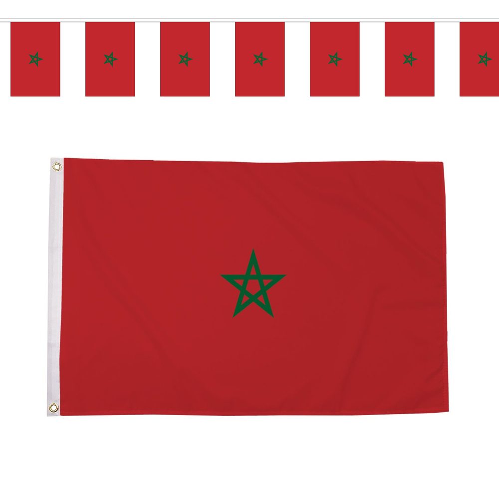 - Medium — 5x3ft Morocco flag + 9m bunting