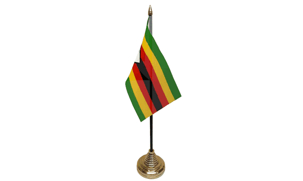 The Zimbabwe flag features seven equal horizontal stripes of green, gold, red, and black, with a white triangle and a red star. The green represents the land and agriculture, the gold symbolizes the country's mineral wealth, the red represents the bloodshed for freedom, and the black stands for the African people. The Zimbabwe Small Table Flag brings this powerful design into a compact form, perfect for desks, tables, podiums, and other display settings at national events, gatherings, and celebrations that honor Zimbabwe's legacy.